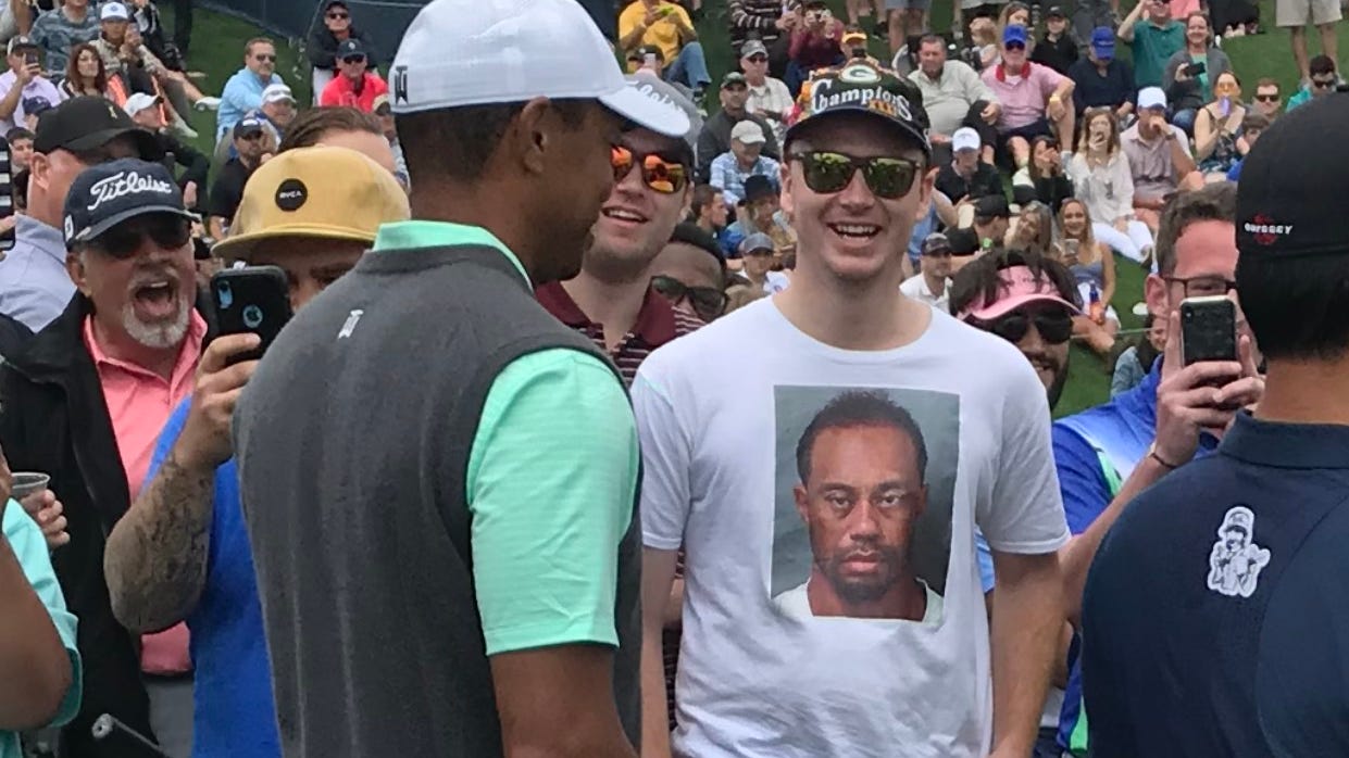 Fan Wearing Shirt With Tiger Woods Mugshot Draws A Smile From Golfer